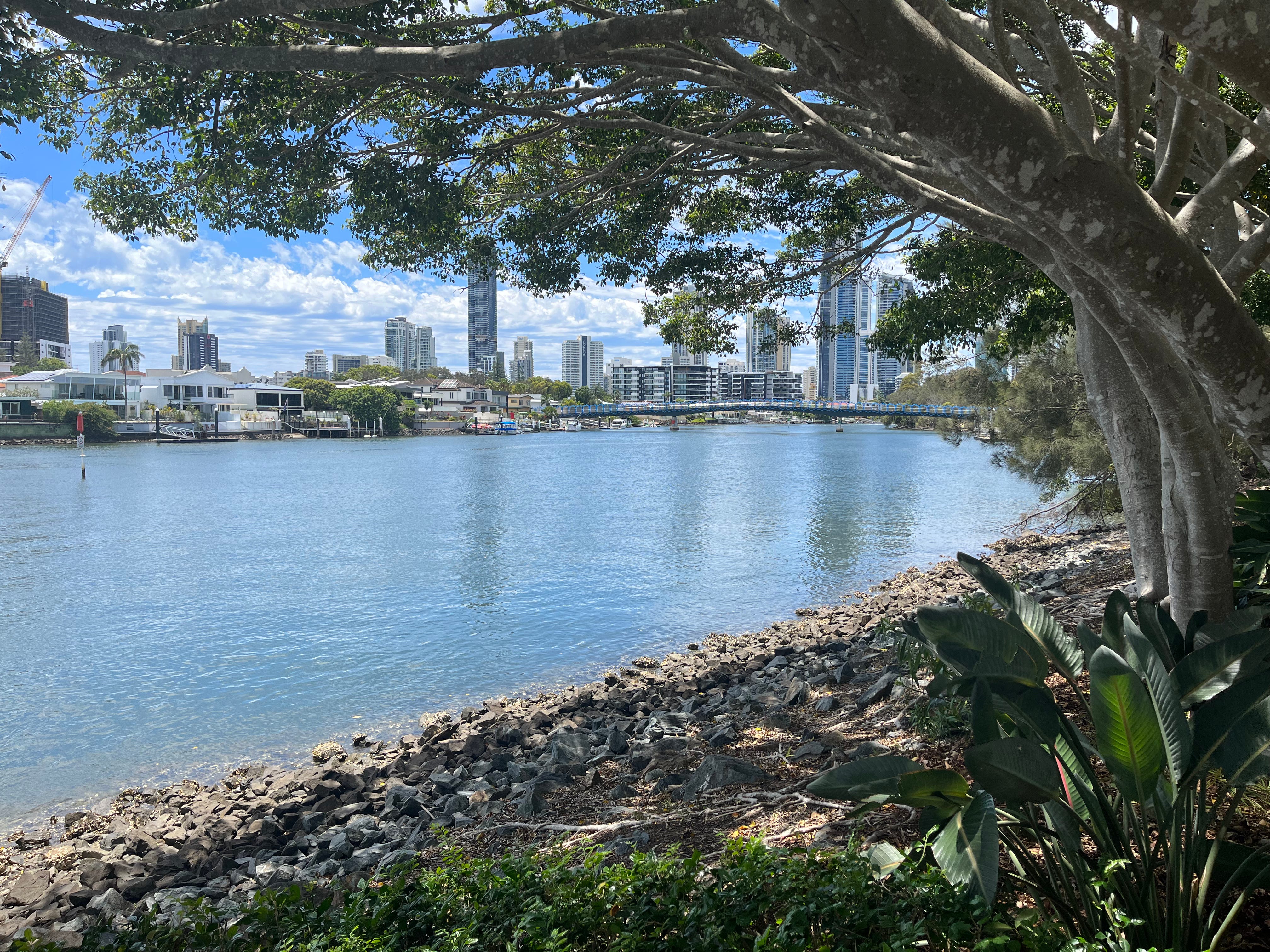 We explored under the bridge, a sandy mangrove bay, the tip of Evandale Park that looks out to Surfers Paradise and a drain that allows water to flush through the swimming lake in the middle of the park.