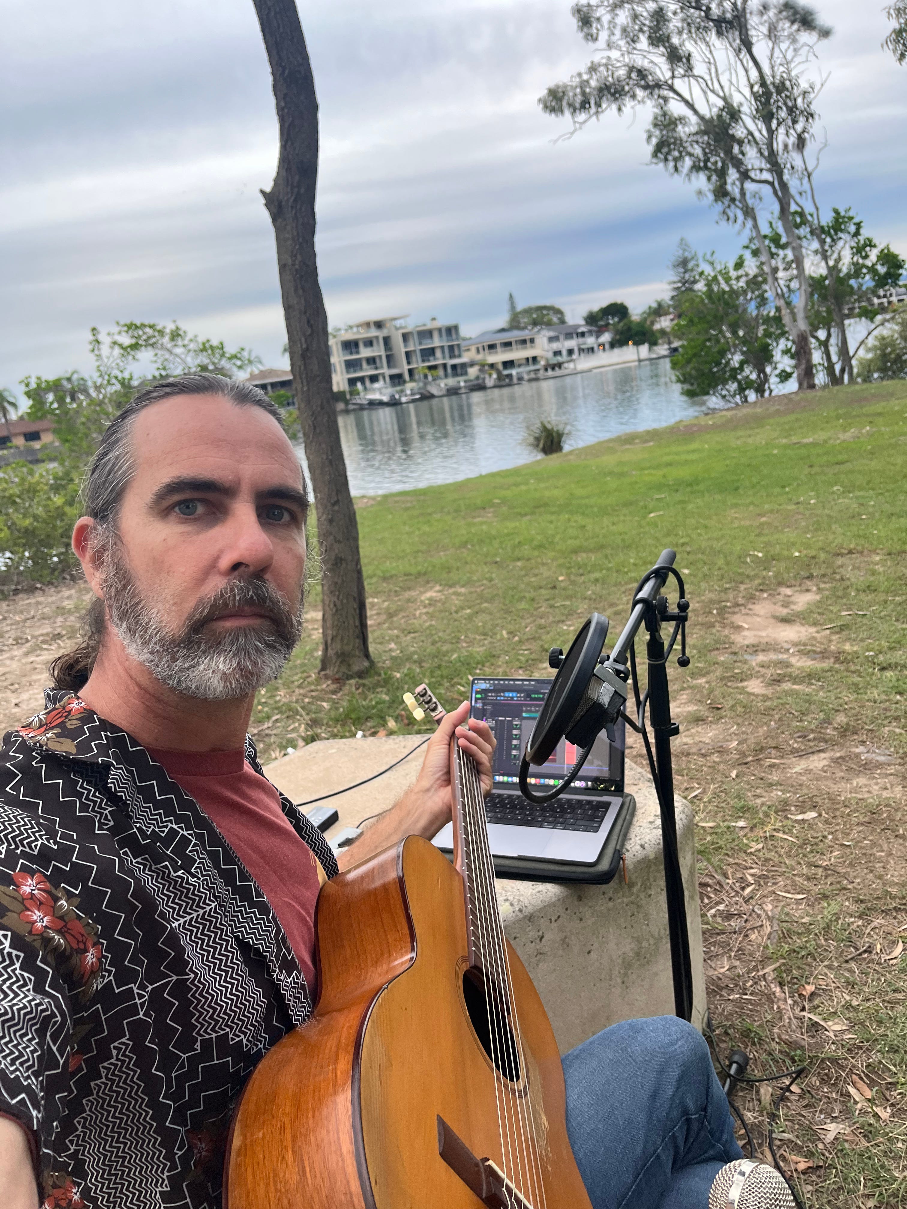 Every day I spend at HOTA, Home of the Arts, I am in the presence of the Nerang River (Ngarang-wal) as it snakes around Evandale Park. Part of my practice has been to sit by the river, observe its environment and write down my thoughts and ideas, both on paper and with my guitar.